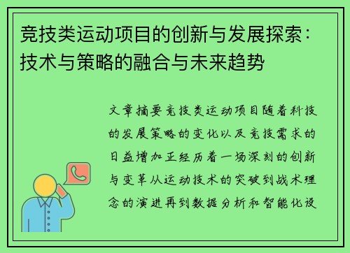随着科技的不断进步和人们对娱乐需求的多元化,竞技类App逐渐成为智能手机应用中不可忽视的一类。如何在激烈的市场竞争中脱颖而出,提供独特的用户体验,成为各大竞技类平台所需解决的关键问题。《打造智能竞技平台提升用户体验探索竞技类App创新发展之路》旨在通过分析竞技类App的现状,探讨提升用户体验的创新策略,从而推动这一行业的可持续发展。本文从四个方面进行详细阐述:智能化技术应用、用户体验优化策略、平台...