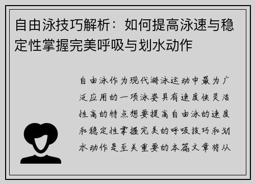 随着世界泳坛新星的崛起以及各类技术革新不断涌现,泳池竞技的格局也在发生着深刻的变化。过去几十年,游泳运动的发展不仅依赖于运动员自身的天赋和训练,更受到装备、技术与科学分析的深刻影响。新一代的游泳明星,凭借卓越的个人能力和高效的训练手段,迅速突破了传统的竞赛极限,打破了无数世界纪录。而与此同时,各种技术手段的进步——如高效的泳衣、精准的数据分析与个性化训练计划,也使得泳池竞技的竞争态势发生了巨大变化...