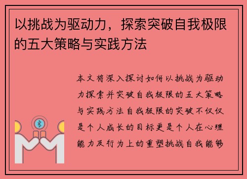 文章摘要:打造一支全能冠军球队不仅仅是技术层面的提升,还需要全方位的战略布局与管理策略。这不仅涉及球员个人能力的培养,更包括球队文化、战术体系的建立,以及管理层的智慧与领导力。在这篇文章中,我们将从四个关键方面进行详细阐述:第一,如何培养多面手球员和高效的球员发展体系;第二,如何构建团队合作和凝聚力;第三,如何制定灵活的战术体系并保持战术革新;第四,如何通过科学的管理和领导力提升整体执行力与战斗力...